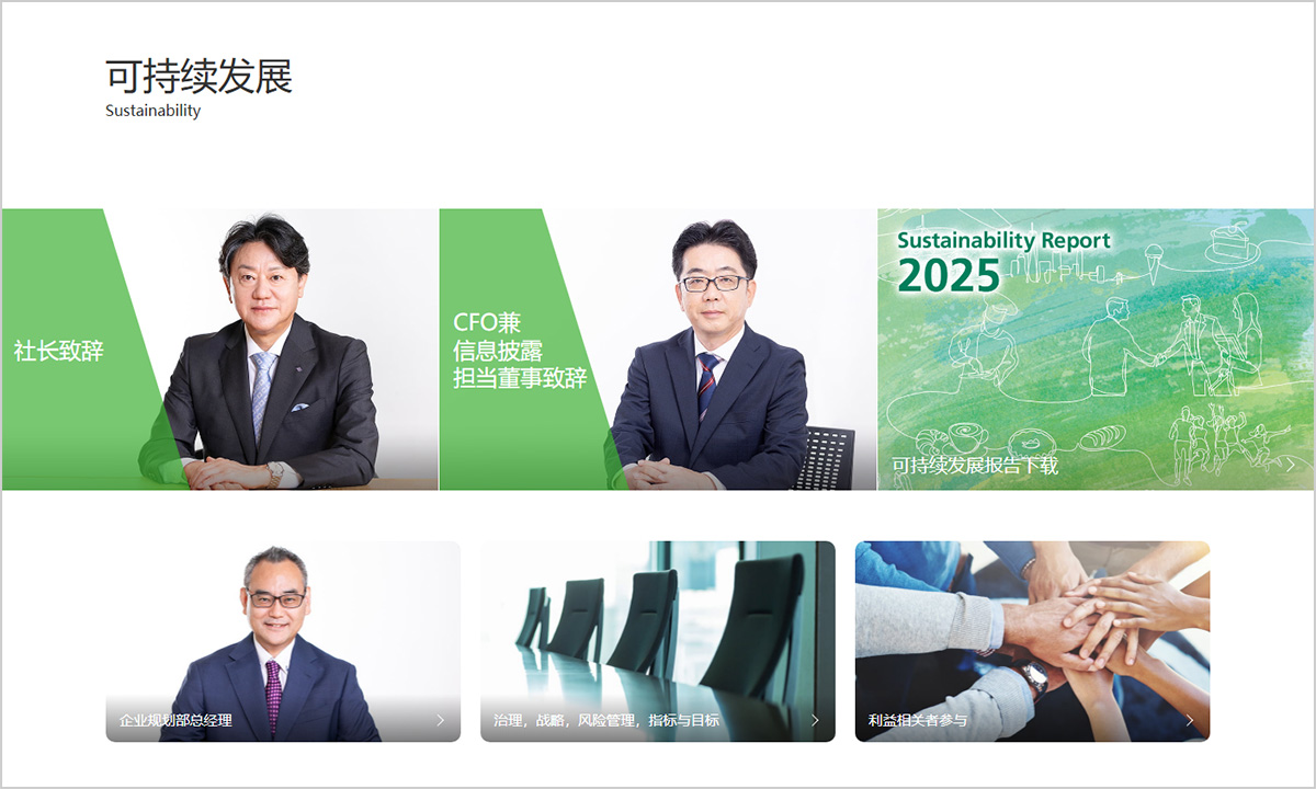 | 可持续经营 | 高层致辞:CEO、CFO、执行董事经营企划本部长 治理:可持续经营推进体制 战略与风险管理:价值链上的风险与机遇 指标与目标:2025年度ESG重要议题 利益相关方沟通 |