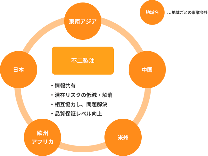 - 各グループ会社の品質担当者とのコミュニケーション強化、食品安全文化・品質情報などの情報共有の促進