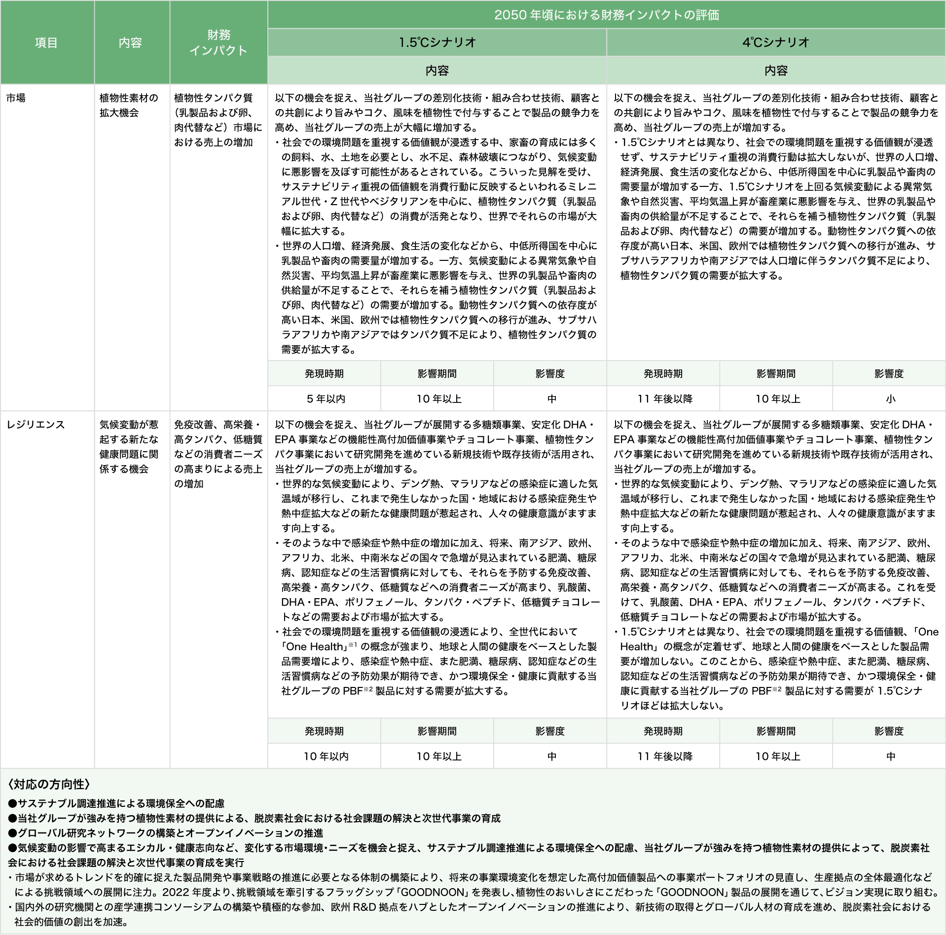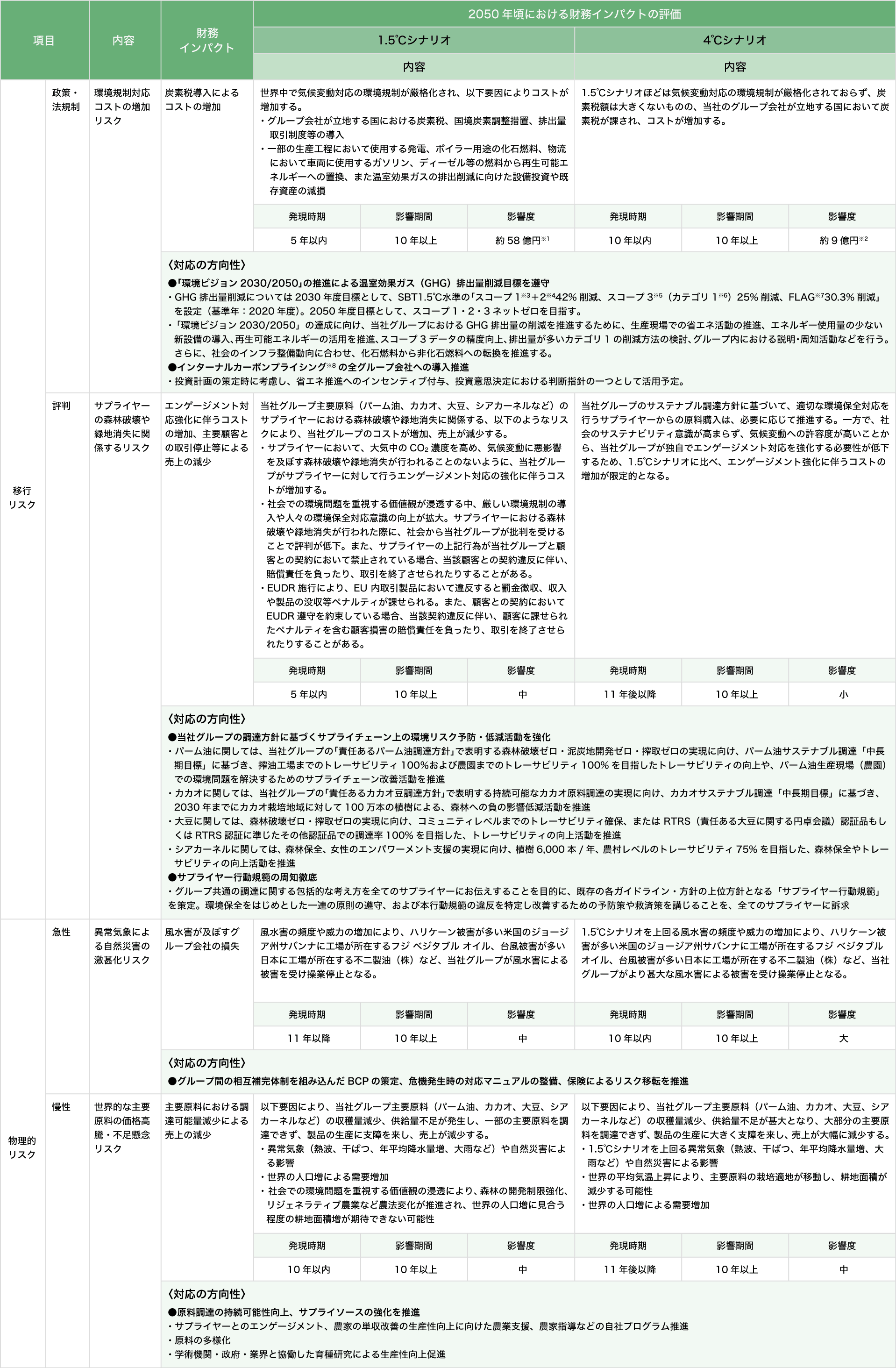 不二製油グループにおける気候変動リスク・機会および財務インパクトの影響度評価GRI:201-2
